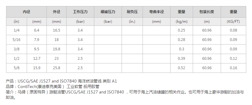USCG/SAE J1527 and ISO7840 海洋燃油管線 類別 A1