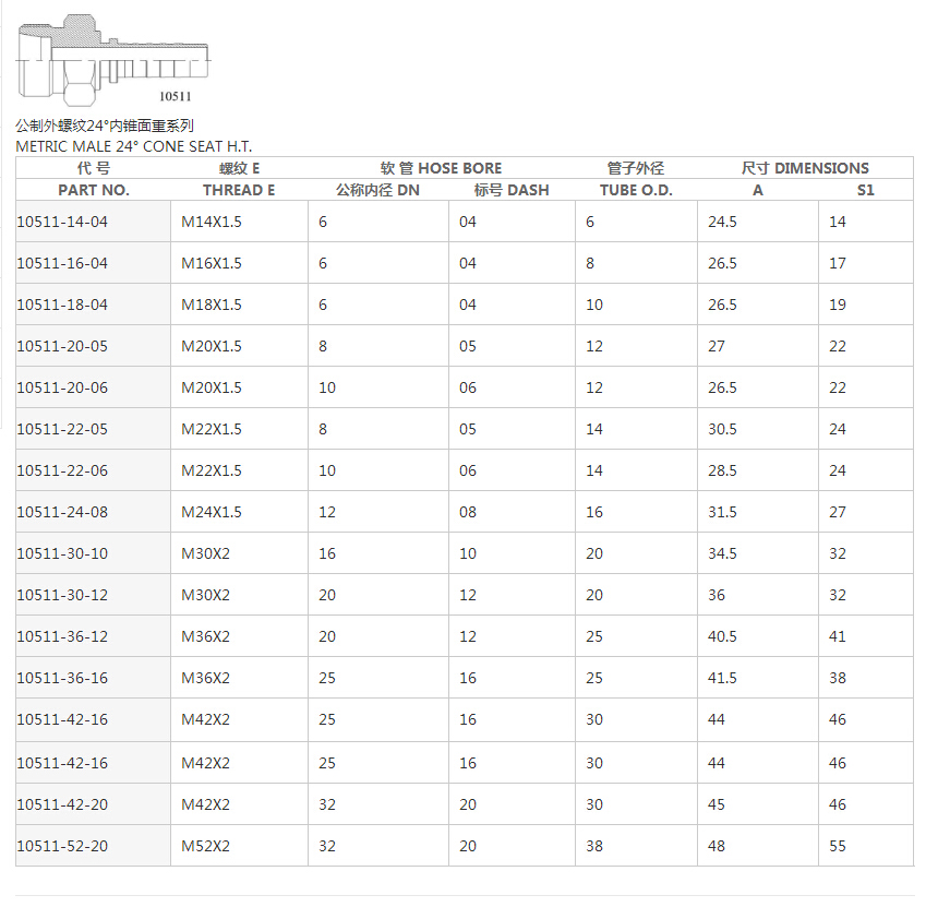10511公制外螺紋24°內(nèi)錐重系列