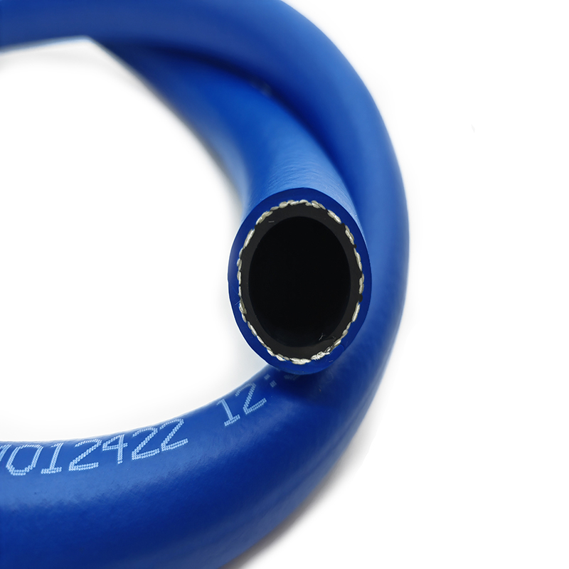 增強(qiáng)層:一層高強(qiáng)度合成纖維編織層,特殊的編織角度使得軟管具備高耐曲繞性,并對(duì)接頭有較強(qiáng)的抱緊度,不必再使用卡箍緊固。